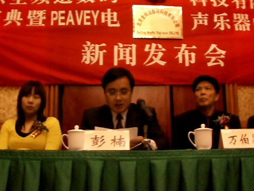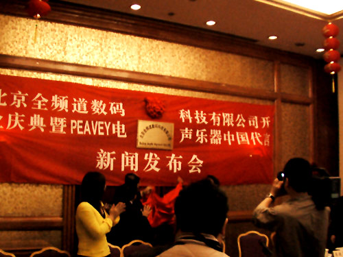 3月12日上午,Peavey中国事业部北京全频道数码科技有限公司开业典礼暨李延亮签约Peavey发布会在北京大观园酒店礼堂隆重举行,北京全频道数码科技有限公司总经理彭楠主持了开业典礼,著名吉他手李延亮嘉宾出席开业典礼,并由Peavey中港澳总代理负责人陈庆源先生进行了赠琴仪式。众多音乐媒体应邀参加了本次活动。